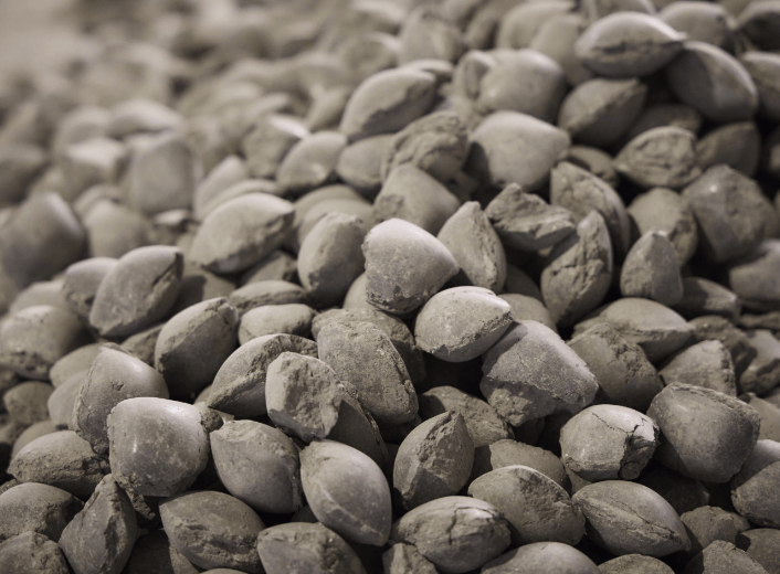 鍍金業者様などから排出される亜鉛粉末等を当社独自の調合方法で、亜鉛団鉱機で高圧力を加え、ブリケット型の亜鉛塊を成型加工しています。